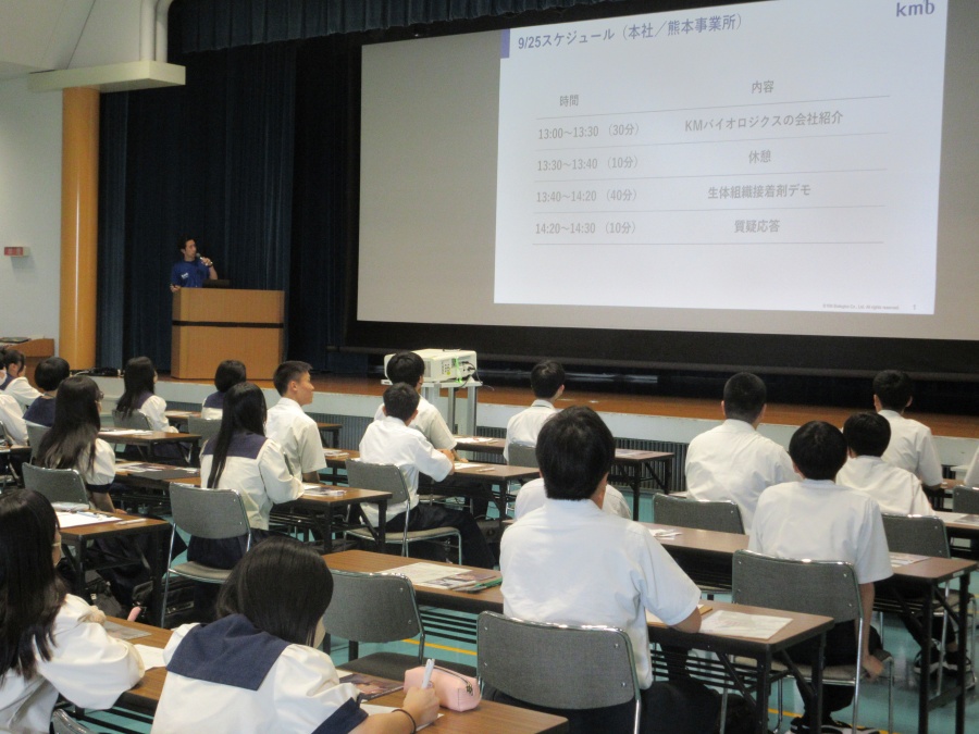 9月25日(木)高校1年生がSSH企業研修で熊本県にあるKMバイオロジクス株式会社に行ってきました。KMバイオロジクス株式会社は2018年7月に明治グループへ仲間入りをした、国内で唯一「ヒト用ワクチン」「動物用ワクチン」「血漿分画製剤」「新生児マススクリーニング」の4事業を行う製薬会社になります。現代の最先端のテクノロジー開発の現場を視察・研修させていただき、大変有意義な研修を受けることができました。