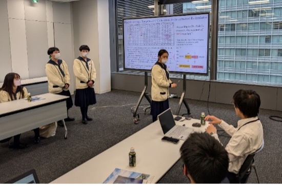 1日目はキャノングローバル戦略研究所を訪問し、主任研究員の堅田元喜様よりご講義をいただきました。生徒のプレゼンテーションに対しては、発表の構成や伝え方、説得力の高め方などについて専門的な観点から具体的なご助言を賜り、大変貴重な学びの機会となりました。