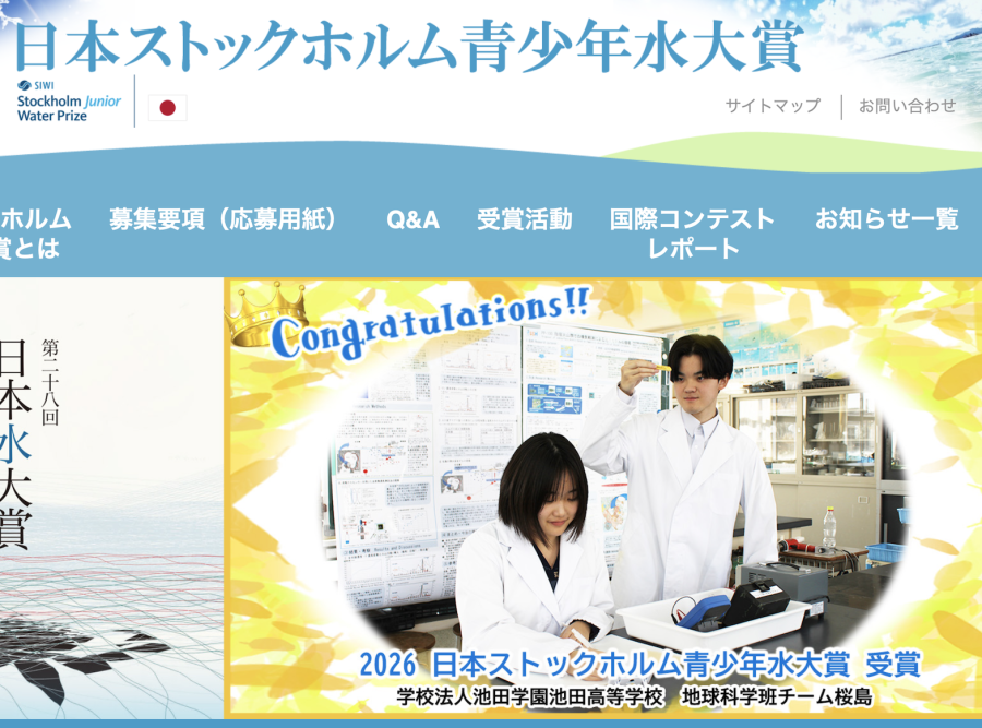 【速報・日本代表】本校SSHの地球科学班、スウェーデンのストックホルムで開催されるSJWP(国際コンテスト)に日本代表として出場 2026年3月19日 最終更新日時 : 2026年3月19日 谷口 晋介 のSSH課題研究・地球科学班が日本ストックホルム青少年水大賞で最優秀である大賞を受賞し、日本代表としてスウェーデンのストックホルムで開催されるSJWP(国際コンテスト)に出場することとなりました。 日本ストックホルム青少年水大賞(日本SJWP)は、若者(20歳以下の高校生等)による水環境保全や水問題解決のための優れた調査・研究活動を対象としたコンテストです。 ▲日本ストックホルム青少年水大賞のページにリンクされています。 「2026日本ストックホルム青少年水大賞」受賞者一覧 http://www.japanriver.or.jp FacebookXBlueskyCopy